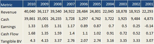 To sum up the numbers, Figure 4 shows a snapshot of what CSCO has done over the past 10 years. In a world of uncertainty, CSCO has consistently grown sales, earnings, cash flow, and book value for the past decade.