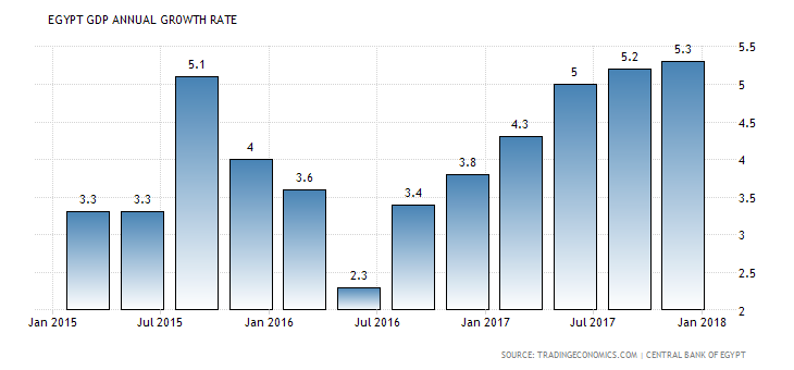Other economic data coming out of Egypt has also been improving. GDP growth is at the highest level in years.