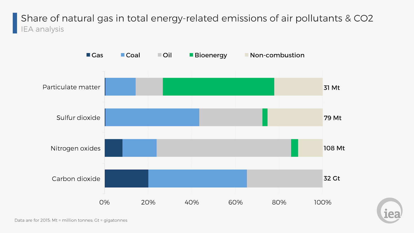 Besides, the move to alternatives will be a long journey completed in steps. Along the way, transitional energies will have a place. Natural gas is such an energy. It’s a fossil fuel and clearly not as green as renewable alternatives, but relative to other fossil fuels natural gas is cleaner, shown below in terms of emissions.