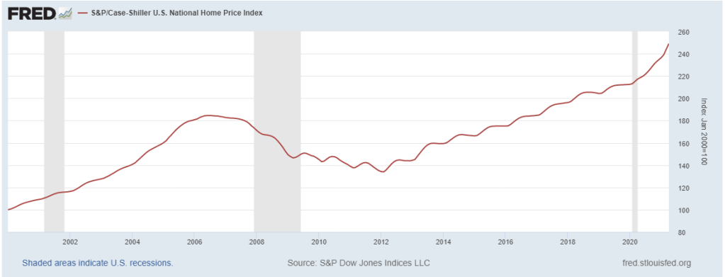 Back in January 2011 I wrote “I think one of the most attractive domestic investment opportunities is also one of the most detested – real estate.” Obvious and easy in hindsight, but in 2011 many people were still licking their wounds from one of the largest real estate crashes ever. People were scared silly and wondering if house prices would ever find a bottom. It took another year for the market to finally bounce and since then prices have surged past the highs of the financial crisis, shown in Figure 1.