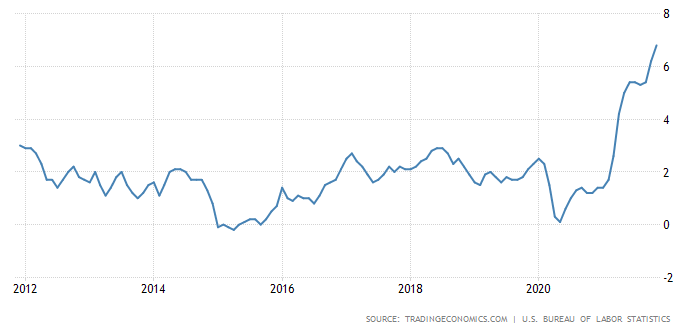 The latest inflation numbers came in at 6.8% year-over-year (headline CPI). That’s the highest since the 1980s. What’s more, the Federal Reserve capitulated from its “transitory” position and has signaled an acceleration of taper and interest rate hikes.