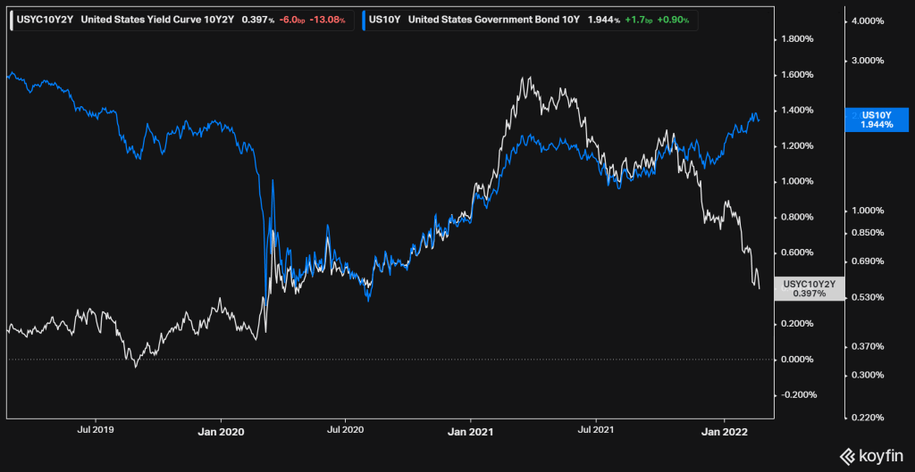 Some data points I have been watching closely are Treasury yields. I wrote in December the 10-year Treasury yield was curiously declining and threatening a potential yield curve inversion. Ironically, 10-year yields shot back up as soon as I wrote that! But even as yields rose, the spread between 10 and 2-year yields continued to narrow and is now less than 40 basis points from inversion. In other words, the yield curve did flatten and a potential inversion is still in play (which was my primary concern).