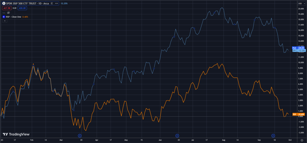 Despite the Q3 pullback, global stocks are still up +8.80% year-to-date with the U.S. stock market leading the way. However, as I pointed out last quarter, the S&P’s gains are concentrated in just a few big-tech stocks, colloquially named the “Magnificent 7” (or M7). That concentration became even more pronounced after the stock market pullback in Q3.