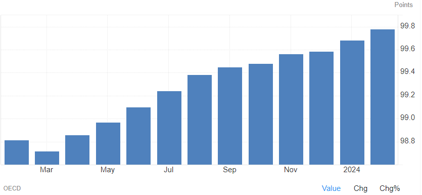 All of these improvements are echoed by the OECD’s Composite Leading Indicator (CLI). The CLI provides a broad read on economic conditions and is currently the most compelling indicator of economic expansion. The U.S. CLI posted 10 consecutive increases.