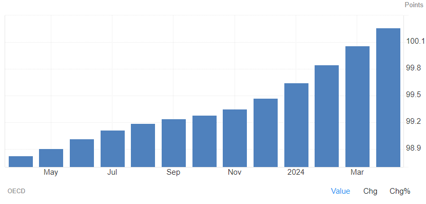 Broader leading indicators are also resilient. The most compelling right now is the OECD’s U.S. Composite Leading Indicator (CLI), which seeks to forecast economic activity 6-months ahead. The latest CLI reading marked a 13th consecutive improvement. Overall, the U.S. economic outlook remains positive, for now.