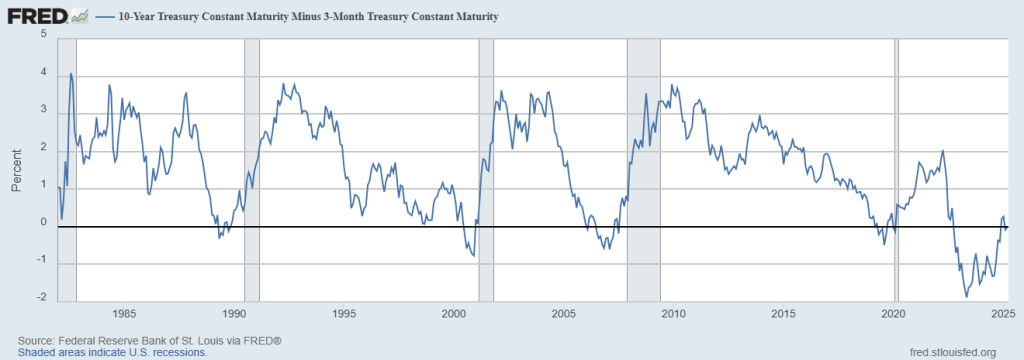 Meanwhile, other economic indicators were also flashing yellow. For example, the Treasury yield curve (3M-10Y) is back to teetering with inversion after finally un-inverting late last year. Taken alone, that’s a bad sign for economic conditions.