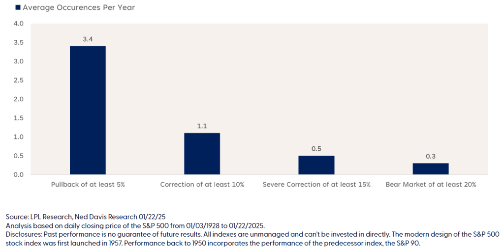 After back-to-back years of double-digit rallies, a sell-off in stocks is not unreasonable. In addition, the S&P 500 was down about -10.6% from its high in Q1, which matches the textbook definition of a typical market correction(-10%). Since 1957, S&P 500 corrections of at least -10% happened more than once a year, on average.