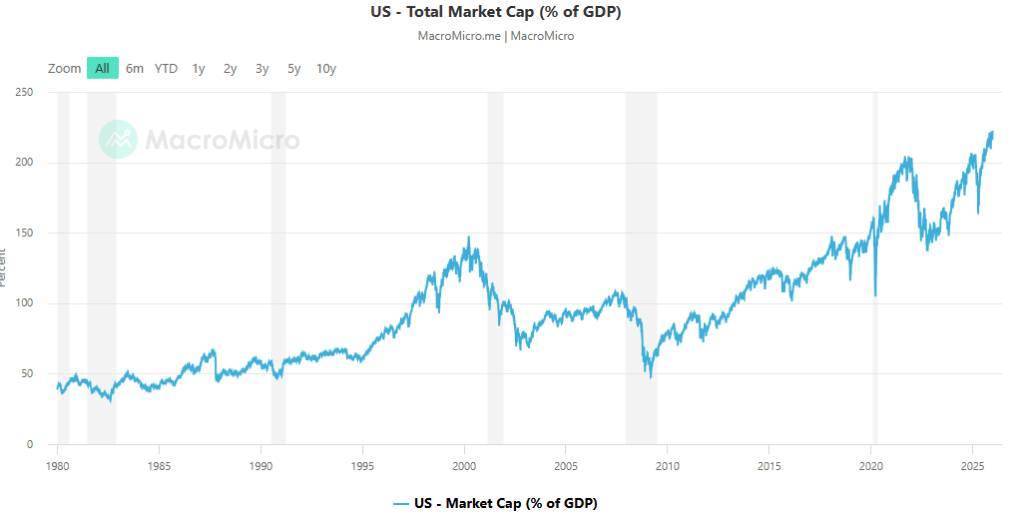 MC/GDP has blown past previous highs set during the Great Financial Crisis and even the Dot Com Bubble. That’s no easy feat because the Dot Com peak was previously seen as the standard for extraordinary excess.
